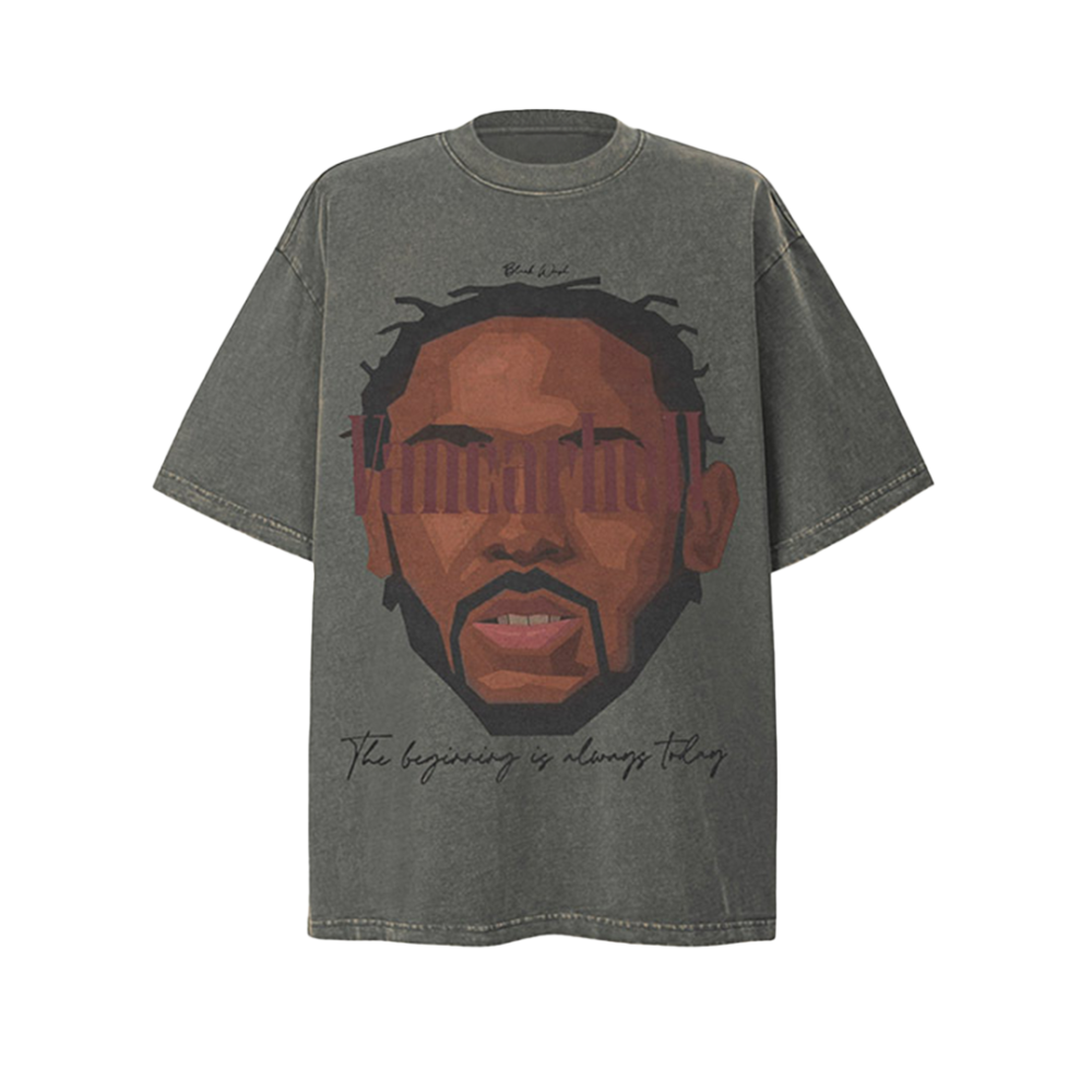 تي شيرت بتصميم جرافيكي صورة فنية ، ونص "البداية دائمًا اليوم"، مما يخلق بيانًا فريدًا ومحفزًا. يتوفر التي شيرت بلونين: الرمادي الداكن والأخضر، والبني الفاتح، وكلاهما بتأثير غسول قديم لمظهر عتيق.