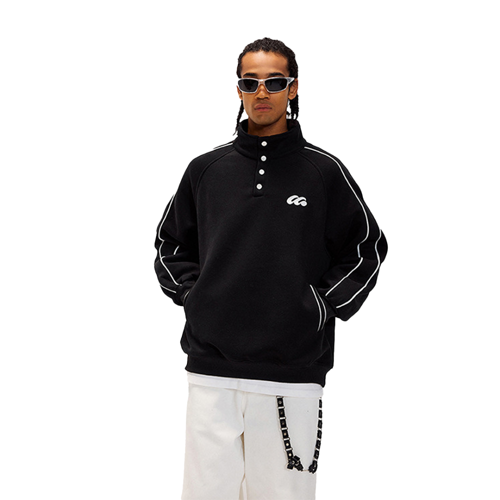 A modern take on a sports-inspired classic, this sweatshirt brings together effortless style and practicality. The quarter-button closure offers a refined yet laid-back touch, while the contrast piping adds a dynamic edge. Perfect for work, casual outings, or layering in cooler seasons, this is an essential piece for a well-curated wardrobe